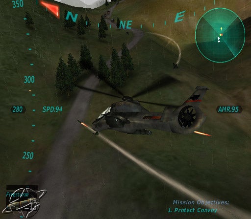 ""This is not a sim in the Jane\'s tradition, although you shouldn\'t confuse it with EA\'s Strike games either. Thunderstrike has the first-person perspective of a sim, and the beginnings of some very realistic graphics both in and out of your helicopter, but it will control and play in the arcade mold, making it easy for most gamers to pick it up and bust tanks with ease. At the same time, some logistics and planning will add depth. Before each of the missions begins (there are three to six such missions for each of the seven campaigns), you have the opportunity to select and guide supporting forces, like infantry, armor, and artillery. You won\'t be able to control those during the mission, but the AI will guide them to support you. You\'ll also have the support of AWACS radar aircraft, pointing out the movements of enemy aircraft and ground forces....""     ...Look at the Link above :)